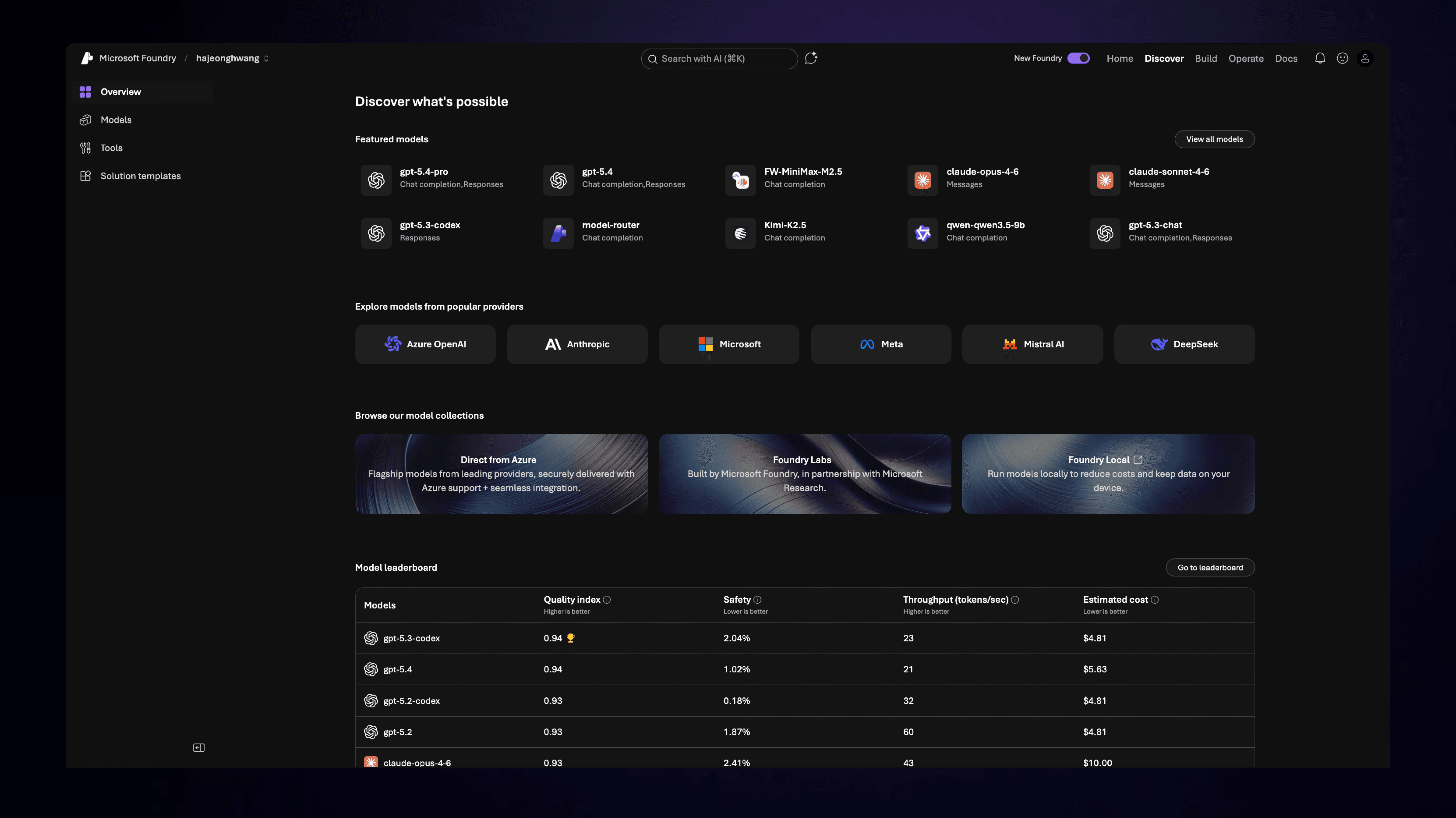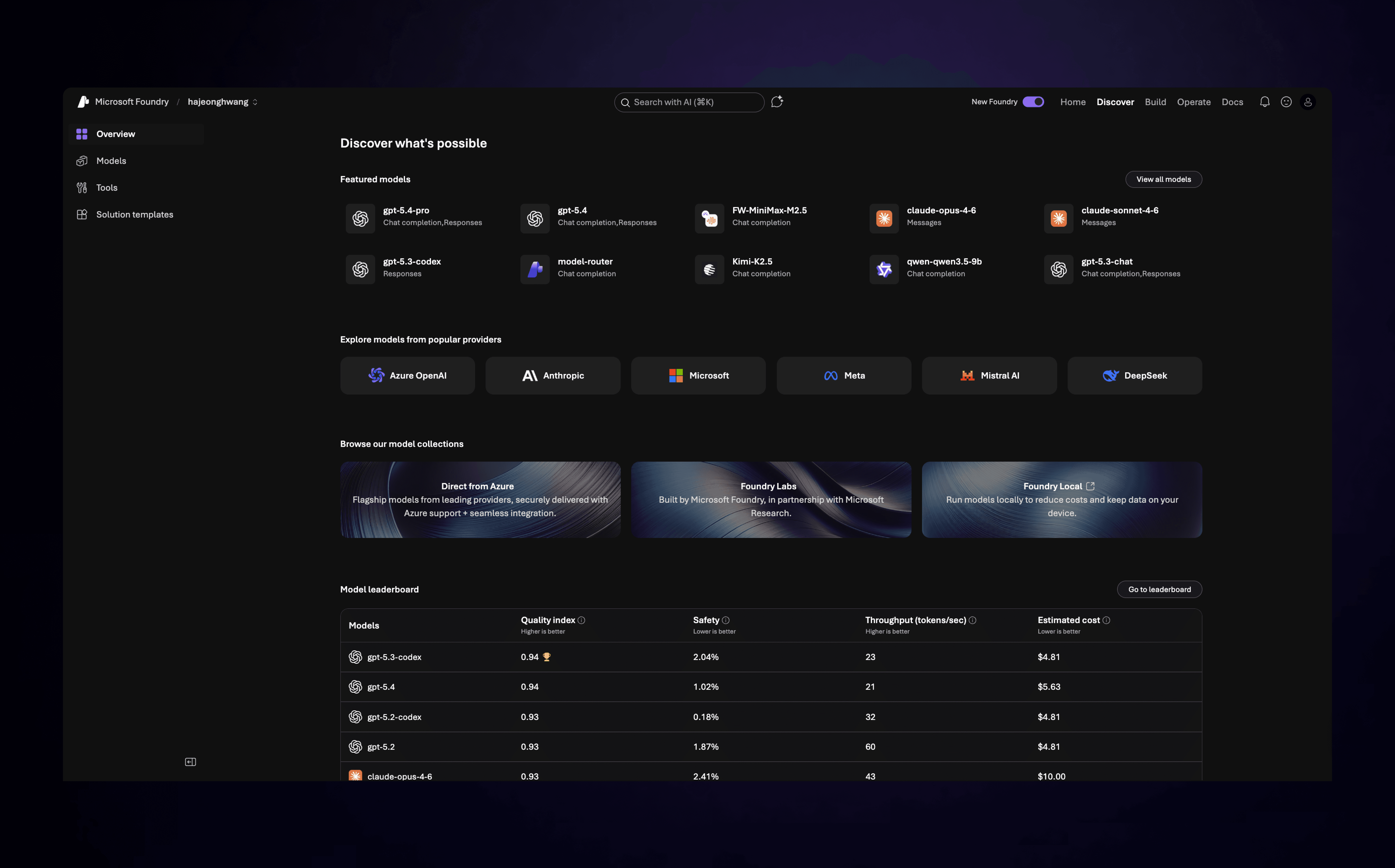 Researched Microsoft Foundry’s Discover Page to inform design recommendations, in collaboration with the Core AI team through UW’s HCDE 517 Usability Testing course.