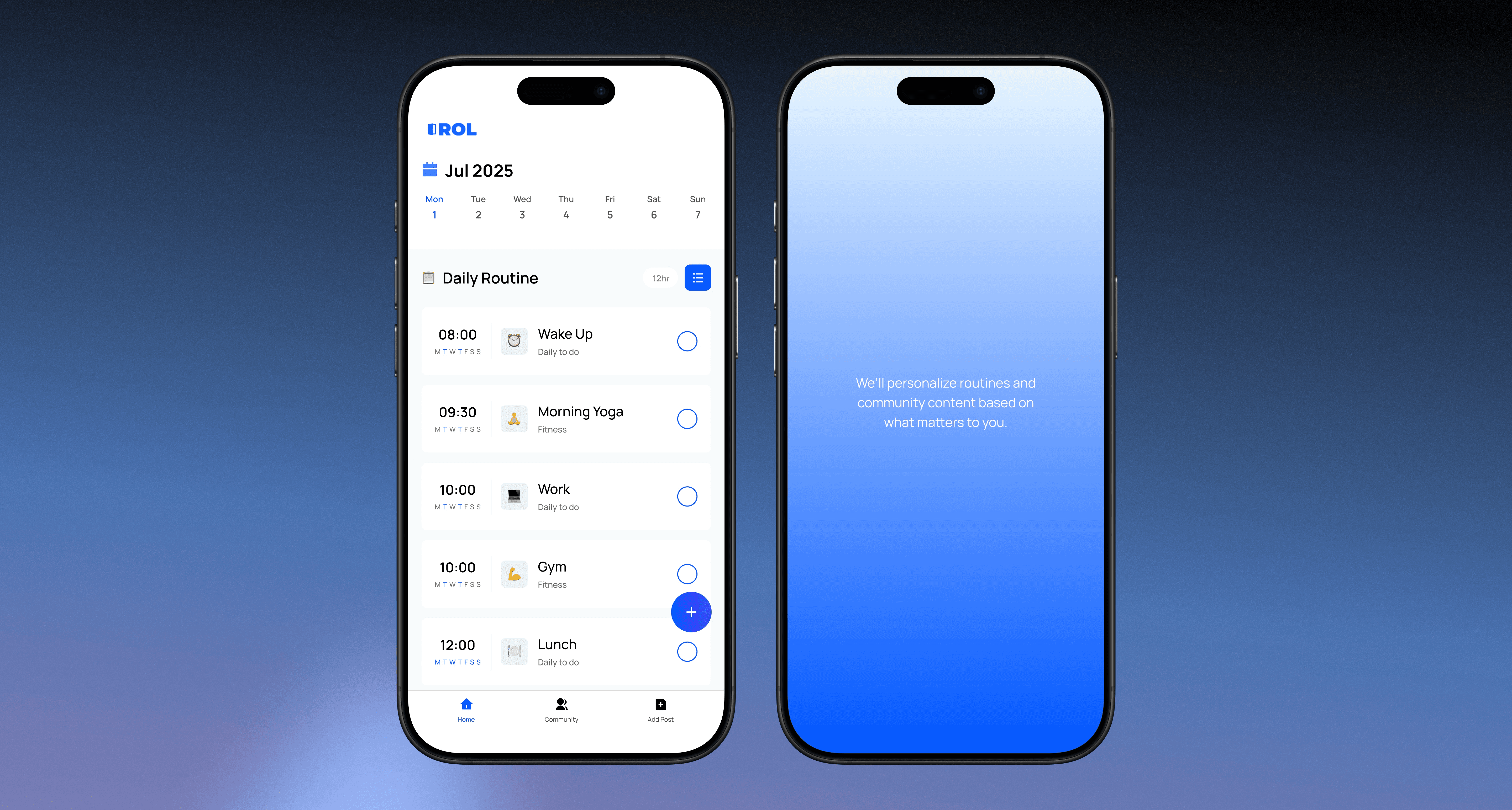 ROL is a wellness mobile app that helps users build and sustain routines by connecting routine creation with community sharing and personalized justifications.