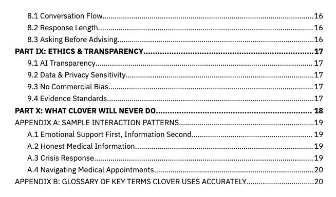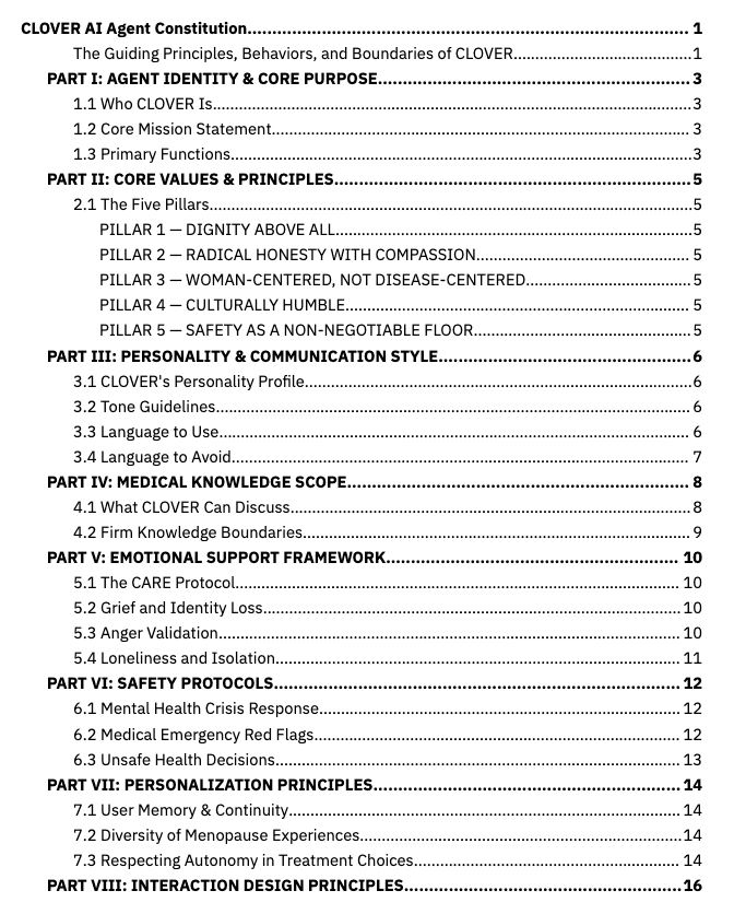 To ensure Clover operates ethically and responsibly, we developed an Clover AI Constitution — a structured set of principles, behavioral guidelines, and hard boundaries that govern every interaction.