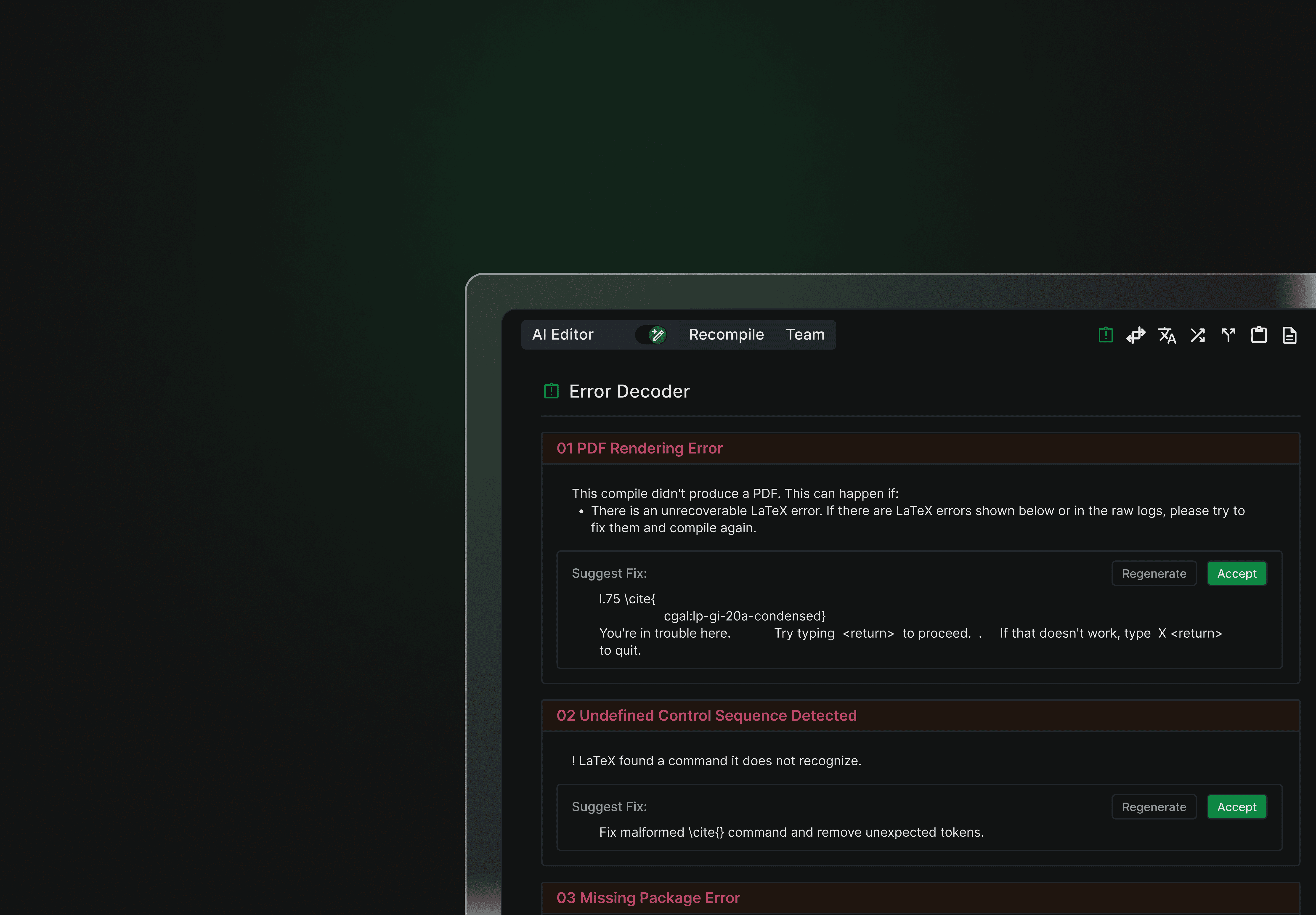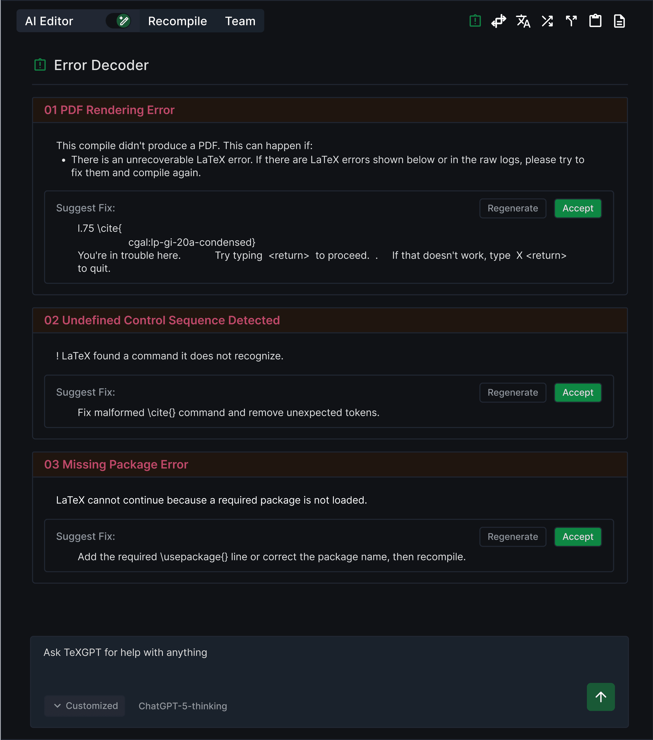 Working on the Overleaf redesign pushed me to rethink how AI fits into code-based writing workflows. I realized that the main issues do not come from being overwhelmed by AI itself, but by fragmented entry points that increase cognitive load.