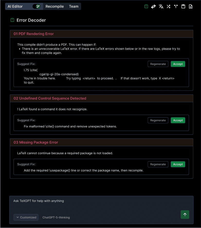 Ask TeXGPT for help with anything